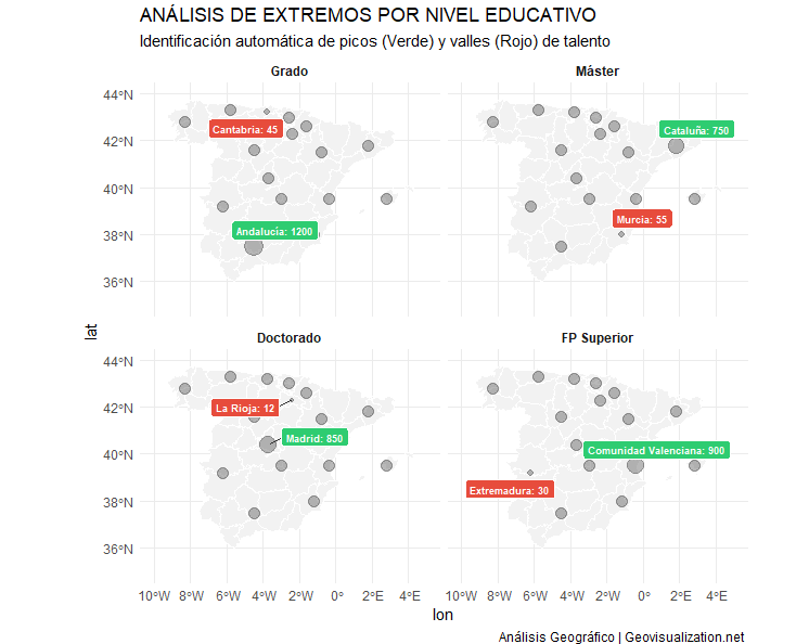 Geographical Balance: Thanks to logarithmic scaling, we see that although capital cities dominate, there is a constant flow of profiles in medium-sized cities, suggesting that talent is distributed but needs incentives depending on the stage of life.