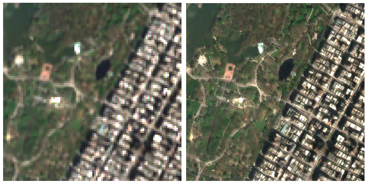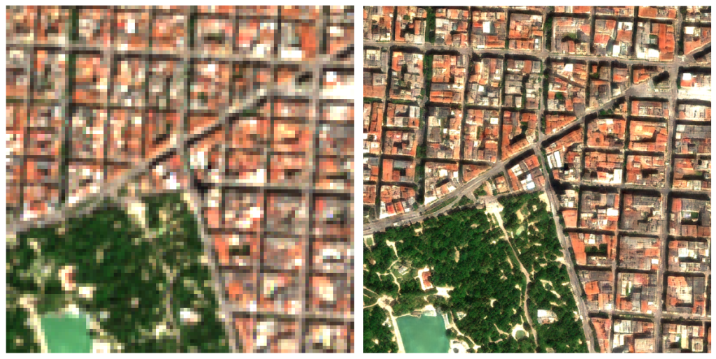 Figura 4 – Sample 2 – S2DR3 Python Super-résolution Sentinel-2 à 1 m (Durham, UK)Figura 5 – Sample 3 – S2DR3 Python Super-résolution Sentinel-2 à 1 m (Madrid, Spain)Figura 6 – Sample 4 – S2DR3 Python Super-résolution Sentinel-2 à 1 m (Central Park, New York, USA)