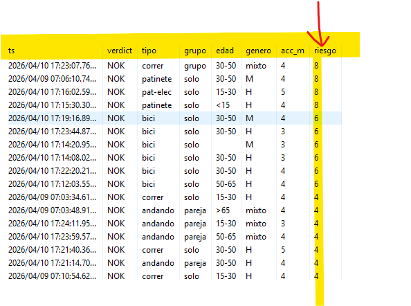 El segundo tiempo llega cuando hay una pausa —entre una oleada y la siguiente. Entonces abres cada registro de la cola, que aparece marcado en amarillo si le falta detalle, y lo enriqueces con calma: tipo de movilidad, edad aproximada, género, si iba solo o en grupo. Campos que en el momento del cruce son imposibles de procesar, pero que con dos segundos de margen se completan sin problema.