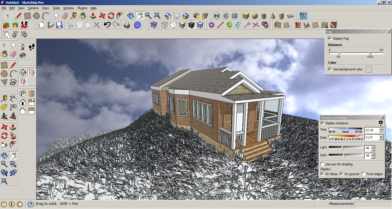 Then import your model previously created using Sketch-up (this time i used google’s 3d warehouse, thank you Dilbert).