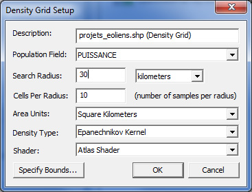 - Faire Carte de densité (en mesurent la puissance du parc)