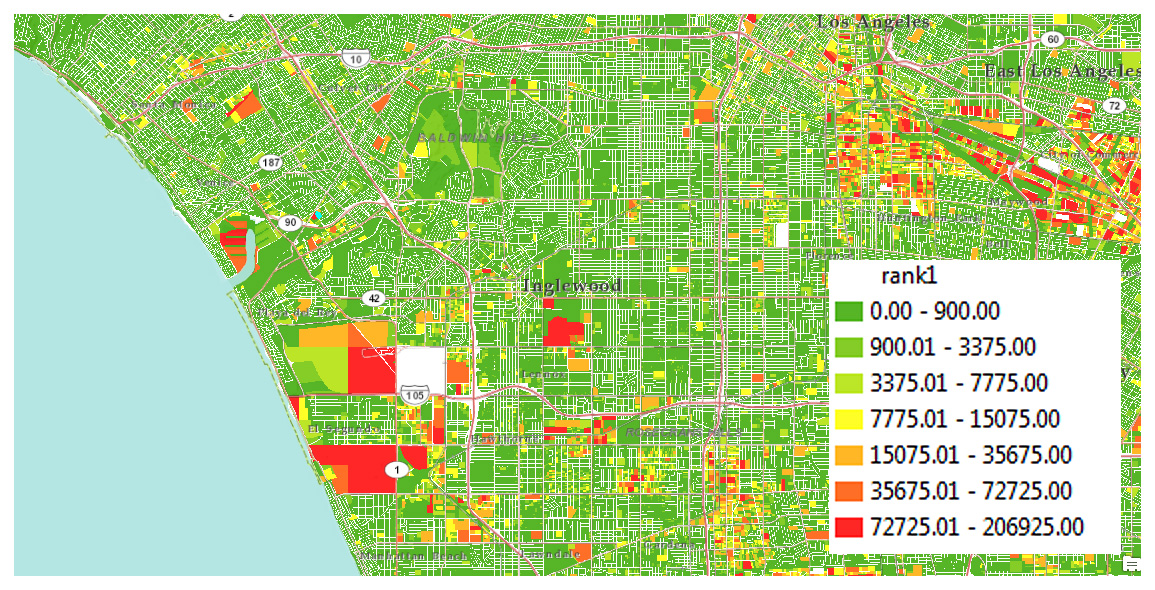 Anyway, trying not to get too upset after writing this words and also trying to make this makes sense in a GIS blog i will try to show you how Lon Angeles county in the US is encouraging the installation of solar panels, ranking all 2010 parcels according to wattHours per square meter. Isn’t it a politically and technically state of the art approach? Yes in my opinion it is, indeed.