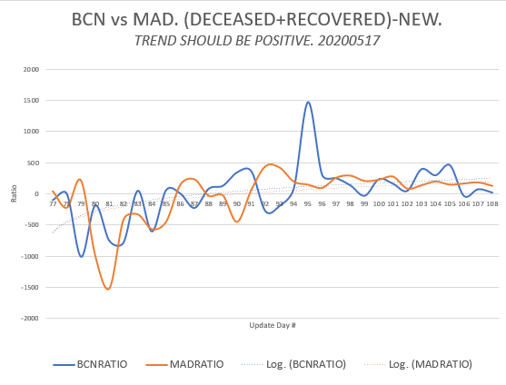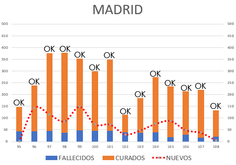 Otra cosa, particularicé el análisis en Madrid, es decir, además de fusilar los datos de todo el país, copiaba una línea extra donde analizaba específicamente el trascurrir del corona virus o COVID-19 en la capital, por cierto, el centro neurálgico del desastre en España.