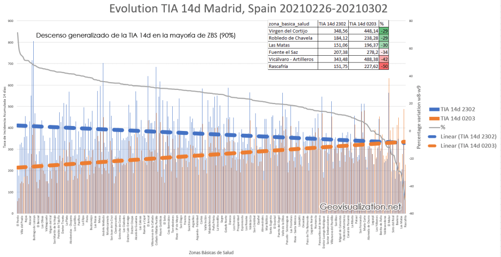 Afortunadamente la Tasa de Incidencia Acumulada por cada 100,000 habitantes baja en Madrid y eso que estamos entre las Comunidades Autónomas con peores datos (Solo mejor que Ceuta y Melilla mientras que en España estamos en 175,63). Me pregunto por qué todavía se plantean de cara a la Semana Santa si abrir la mano con las restricciones (no cerrar perimetralmente) cuando claramente las cifras están acompañando bien… De esta manera facilitamos una cuarta ola. ¡¡No debemos bajar la guardia!!
