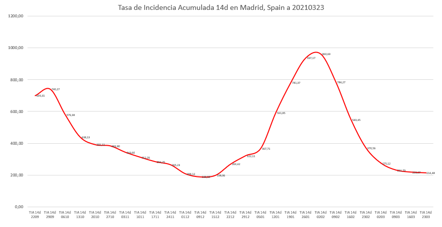 A nivel general la Tasa de Incidencia no sube sino que baja unos puntos… sin embargo ya hay más de 140/287 ZBS con tendencias negativas (desde los -2% de Valderribas hasta los -300% de Ramon y Cajal). Esto, comparado con hace un mes, cuando tan solo 12/287 ZBS fueron negativas, es un gran cambio negativo.