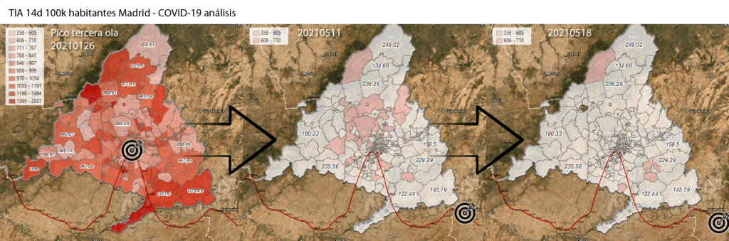Simplemente como update del post anterior y para ver el proceso de semana en semana. Todo indica que salvo excepciones, la bajada de Tasa de Incidencia Acumulada a 14 días por cada 100,000 habitantes por Zonas Básicas de Salud en la Comunidad de Madrid es unánime y ya no hay ni una sola Zona Básica de Salud en todo Madrid que esté con limitaciones de movilidad.