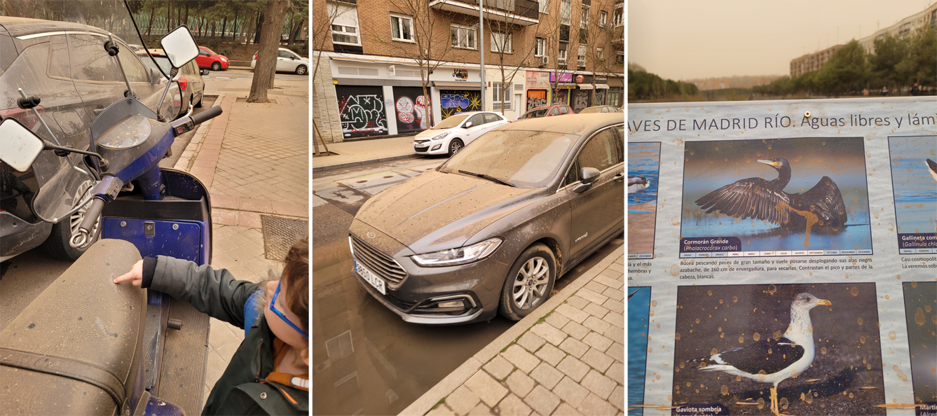 Aquí abajo ya os copio algunos textos que encuentro relevantes y más abajo las fuentes de dónde he sacado los datos. En resúmen, la arena del Sahara puede sin problemas trasladarse desde allí hasta el centro de la península incluso si es la primera vez desde hace veinte años que lo hace con esta “virulencia” pero si esta misma arena puede llegar hasta Colombia, desplazándose hasta 8,000 km es que nos sorprende que algo que asociamos a la pequeña escala funcione también a gran (grandísima) escala, pero sí, es posible.