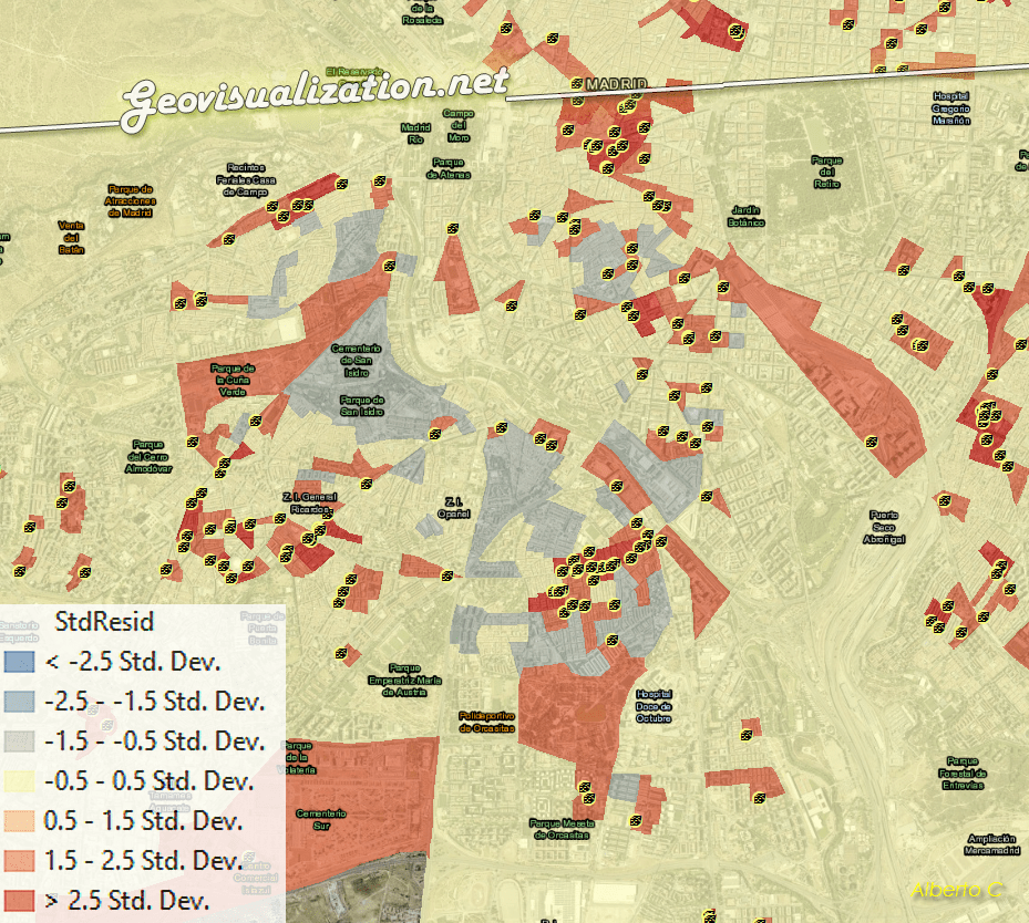 From the standpoint of a spatial analyst, GWR serves not only as a statistical tool but as an exploratory framework that integrates spatial thinking directly into the modeling process. It enables an interpretation of the urban landscape of Madrid, grounded in official data sources and aligned with best practices in spatial econometric analysis.
