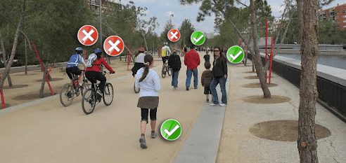 Y cuando eso ocurre, se genera un caos silencioso. Normalmente se resuelve en segundos con ese equilibrio dinámico tan mediterráneo que tenemos —un quiebro, una mirada, un gesto— pero no siempre. He visto bicis arrollar a personas que iban por su lado. Grupos andando en paralelo, bloqueando la vía entera. Patinetes a velocidad de vértigo a punto de llevarse por delante a un niño que, irónicamente, iba exactamente donde debía. Yo mismo llevo usando esta vía desde casi su inauguración, hace más de once años, y puedo decir que el problema no ha mejorado: ha crecido, a medida que el carril se ha llenado de nuevas tipologías de movilidad.