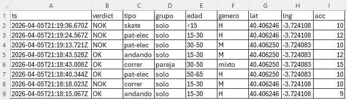El segundo tiempo llega cuando hay una pausa —entre una oleada y la siguiente. Entonces abres cada registro de la cola, que aparece marcado en amarillo si le falta detalle, y lo enriqueces con calma: tipo de movilidad, edad aproximada, género, si iba solo o en grupo. Campos que en el momento del cruce son imposibles de procesar, pero que con dos segundos de margen se completan sin problema.