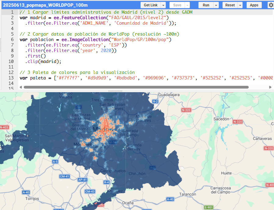 By combining JavaScript with GEE, it is possible to bridge the gap between data processing and visualization, building end-to-end workflows that range from simple exploratory scripts to fully functional geospatial applications.