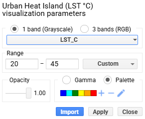 Map.addLayer(urbanMask.updateMask(urbanMask), {palette: ['red']}, 'Binary Urban Zones');