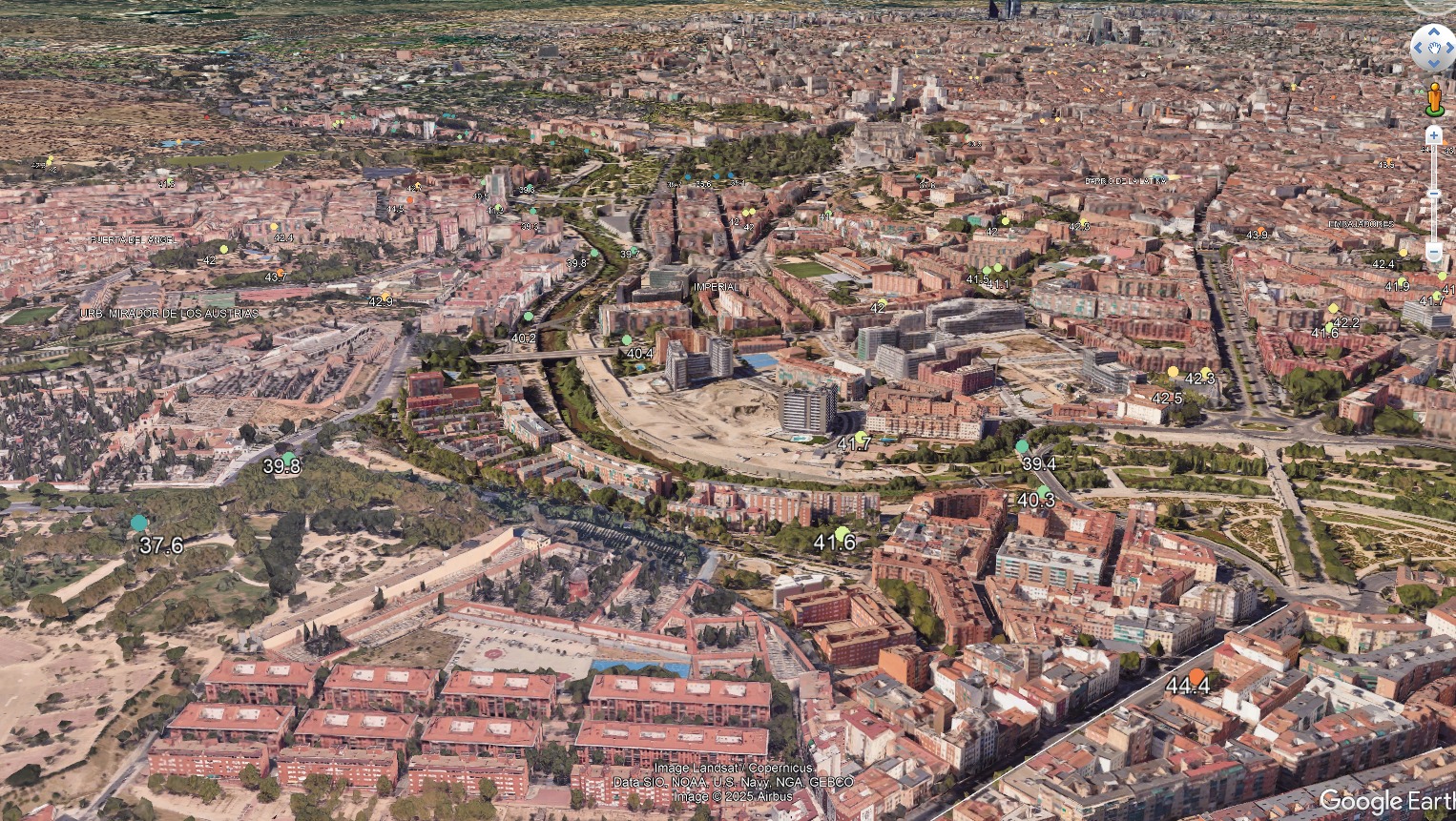 Madrid overview using Google Earth. Download the KMZ, choose your closest playground and check those temperatures by yourself!!