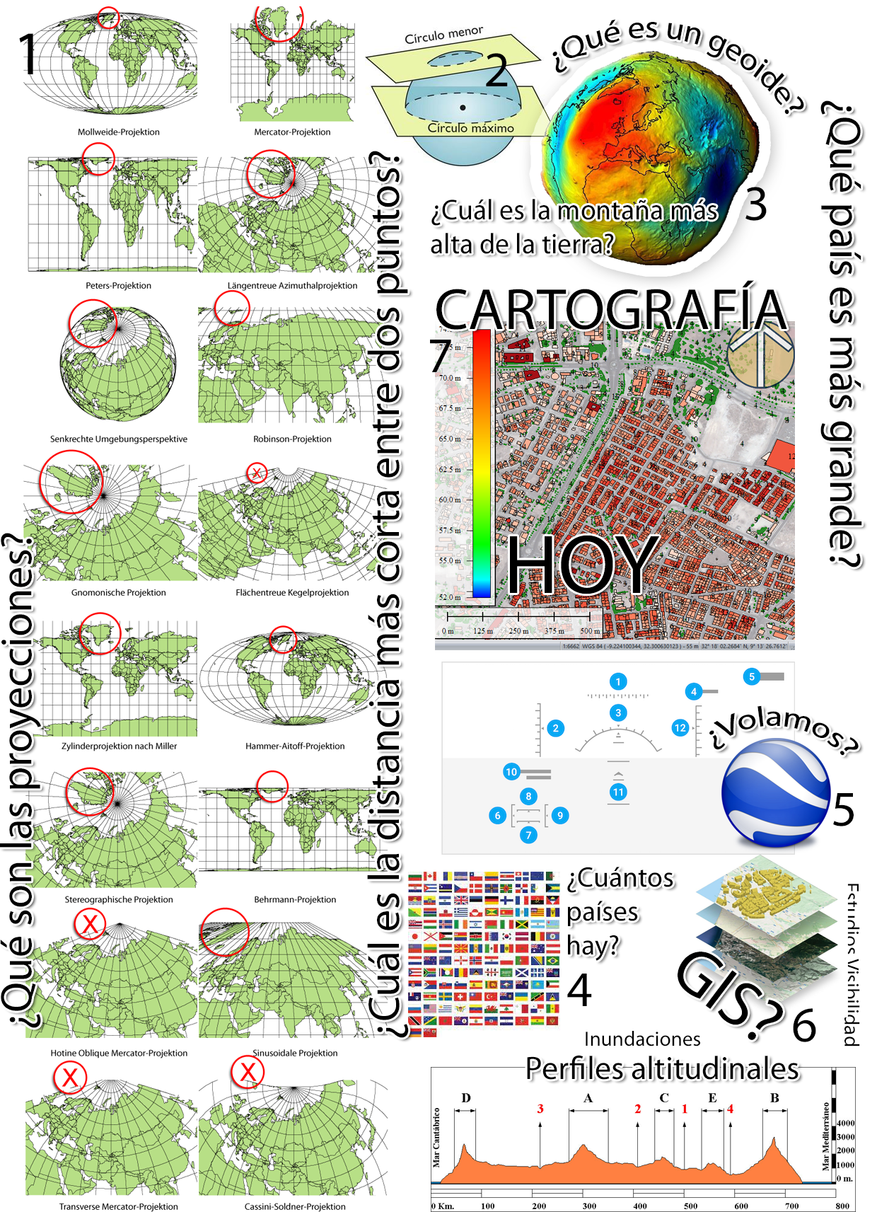 En esta ocasión de la mano de la profesora María y la tutora, Inma, y como las veces anteriores, preparé una presentación en color para cada uno para ayudarles a seguirme. Empezamos con las proyecciones cartográficas y algunos conceptos básicos que nos permiten comprender las distancias y los tamaños cuando pasamos del globo terráqueo (en 3D) a un mapa (en 2D), volamos en avión por el Tibet usando el simulador de Google Earth y luego les mostré un proyecto cartográfico reciente y real de hace unos pocos días sobre Marruecos. ¡Cuántas veces me preguntaron, cuánto se sorprendieron al ver en pantalla que la tierra no era completamente redonda o visualizando un perfil altitudinal!!.