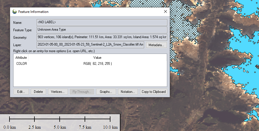 Another interesting thing is to be able to quantify the snowfall. There is a snow classifier based on NDSI (Normalized Difference Snow Index). The (NDSI) snow cover is an index that is related to the presence of snow in a pixel and is a more accurate description of snow detection as compared to Fractional Snow Cover (FSC).